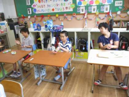 お歌の時間にカスタネットを使ってリズム打ちの練習をしました。