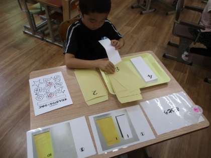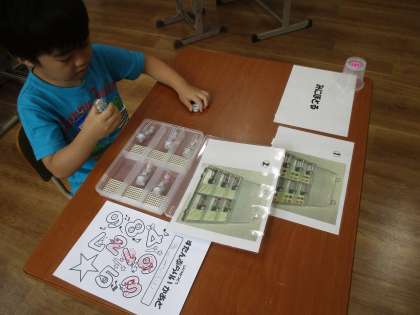 小さなトングを使ったり,スプーンを使ったり,日常生活にも生かせる課題を設定しています。