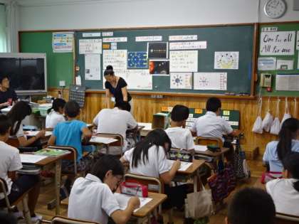 満月に近づいてきました。6年生は10日ほど前の三日月の頃から月と太陽の観察を続け,月の満ち欠けと太陽との関係について学習してきました。この日はこれまでの学習をまとめ,月と太陽の関係をおさえていました。