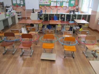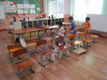 身近なものを使って,トラップを上手くよけながら体を動かしました。