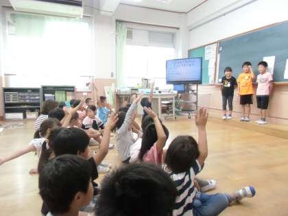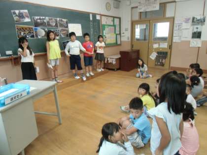 1年生の前で発表するのは緊張した様子でしたが,練習した成果を