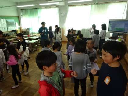 また,その後はたてわり班で教室でできる遊びをして交流を深めました。6年生が考えてくれた伝言ゲームやクイズ,あっちむいてホイゲームなどに取り組み,盛り上がりました。