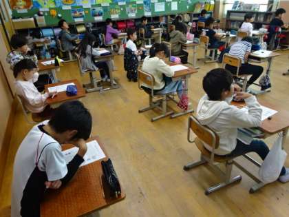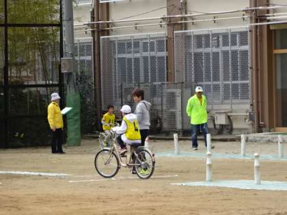 12日(火),4年生の自転車教室がありました。お天気に恵まれ,外での技能試験や法規試験を行いました。また教室では学科試験も行いました。