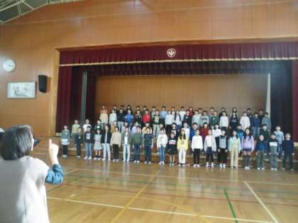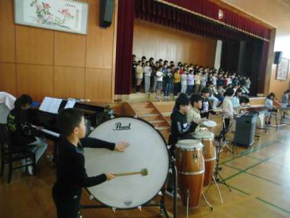 音楽が始まると,きりっとひきしまった顔で一生懸命に演奏し,自分たちの音楽を楽しむ姿が見られました。歌は,音楽の丸田先生と発声練習をしなおすと,よりいっそう美しい歌声になり,嬉しそうな表情に☆