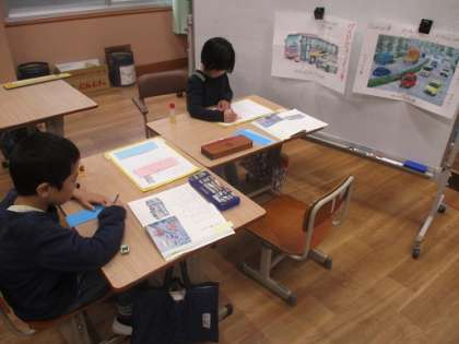 働く自動車の「しごと」と「つくり」を,クーピーで色分けしたり,色別カードに書いたりながらまとめ,文章の構成を捉える練習をしました。