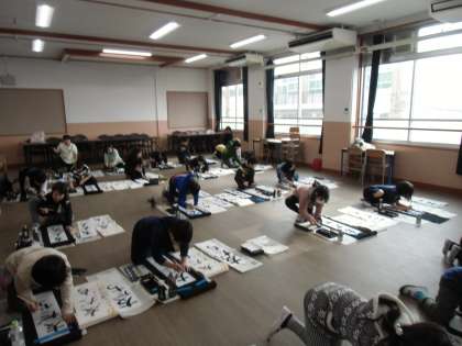 いつもと違う大きな半紙(画仙紙)に立派な字を書くことができました。
