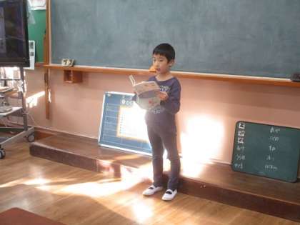 教科書を正しく持ち,良い姿勢で音読発表ができました。