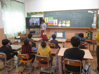 普段の給食の時の食べ方を例に,正しい食べ方について学習しました。