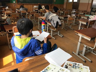 学校へきているみんなは,もくもくと勉強をしたり,本を読んだりしています。