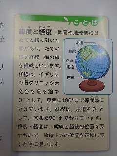地球儀にある緯度(いど)や経度(けいど)も間違えやすいので