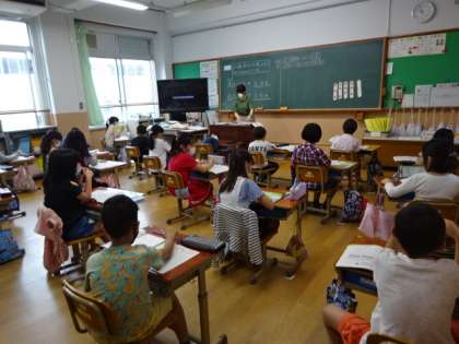 1・2年生で「たし算・ひき算・かけ算」を学習してきた3年生。いよいよ四則計算の最後にあたる「わり算」の学習が始まりました。「いくつずつに分けられるか」を数図ブロックを使うなどして確認しながら学習を進めています。