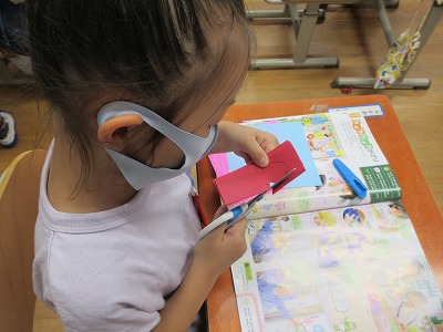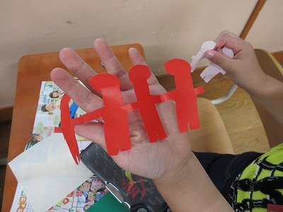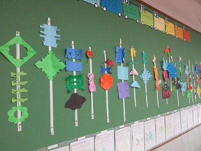 今週ははさみを上手に使いながら,折り紙や色画用紙で様々な模様の飾り作りをしました。