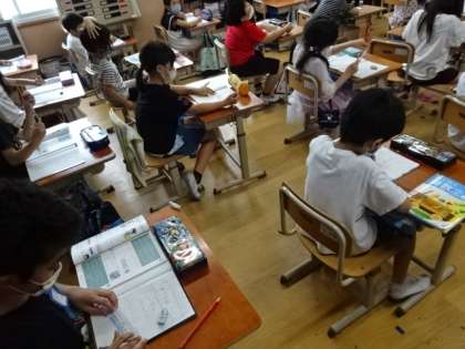 2年生は算数の学習でした。長さの学習を経験したので,ものさしを上手に使い,テープ図も上手に描けていました。