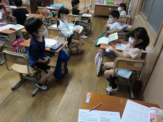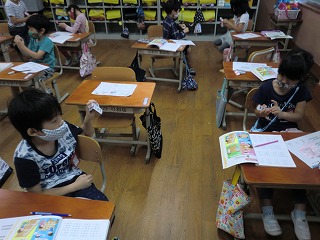 教室でもたしざんのふくしゅうをしながら,