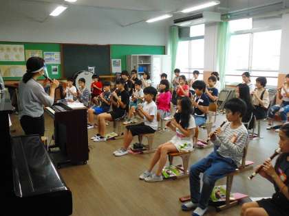 学校が始まって初めてリコーダーを演奏しました。久しぶりでしたが,「シ」のフラットに気を付けながら,リコーダーの演奏を楽しみました。