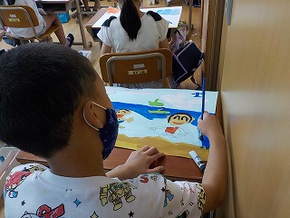 自分の一番の思い出を,絵の具の色使いで表現しようとしました。