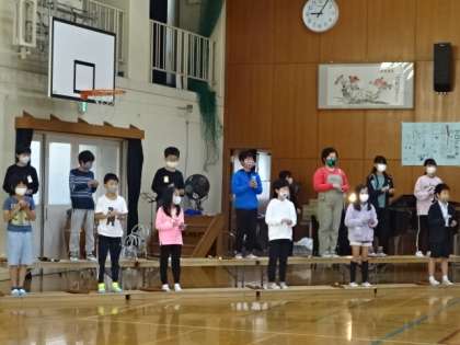 4年生は「それいけ!陽気な4年生」というテーマで発表しました。朝いちばんという悪条件の中でしたが,さすがパワーのある4年生。元気いっぱいに合奏や合奏を披露し,例年にはない静かな発表会の空気を盛り上げてくれました!