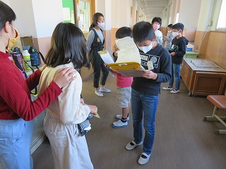3年生が,4年生にインタビューに来てくれました。鏡山循環バスについて調べている3年生は,今年度,地域の方にインタビューができないので,昨年度学習した4年生に,質問をしに来てくれています。自分たちが知っていることを,じっくり思い出し,分かりやすく伝えることができていました。