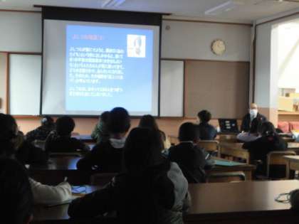 学校の住所でもある血洗町が源義経が刀を洗ったことからついた地名であることや,鏡山の人口が増えた歴史について,具体的な地名や写真を出しながら説明していただきました。自分たちの住むこの地域の歴史について,詳しく知ることができ,みんな喜んでいました。