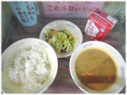 「カレー」はルーから手作りです。「ルーは給食調理員さんが作っていると知り,おいしさのひみつがわかりました。また作ってください。」というすてきな感想が届いていました。