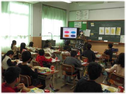4年生の教室をのぞいてみると,使った食器や食缶をきれいに返せるように,みんなで協力する様子が見られました。