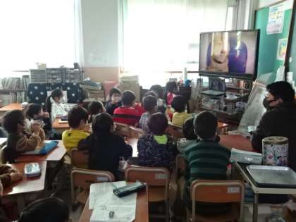 図工では紙版画に挑戦です。友だちと出来上がっていく作品を見合ってアドバイスをしながら,作業を進めていました。