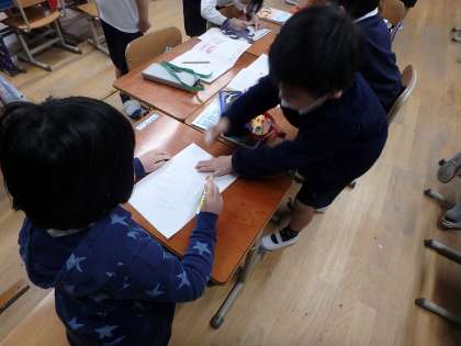 同じ班になった子のお名前を教えてもらったり,紙に書いたりして心の距離がさらに近づきました。