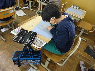 5年生では冬休み前から一版多色刷りの版画を作っています。