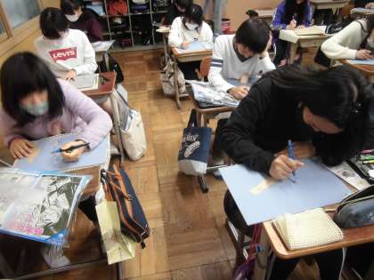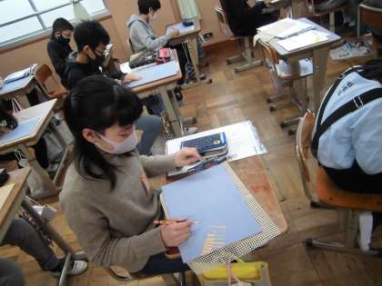 図画工作科の学習では,自分の姿とすきなことをテーマに作品を作っています。今回の作品では,きれいに彫り進めていくのではなく,顔や服のしわなどの線をどのように表現していくのかをよく考え,作品づくりを進めています。どんな作品ができるのかとても楽しみです。