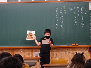今回の「ききたいな,ともだちのはなし」では,自分の好きな本を紹介しました。本のおもしろいところを紹介した友達に対して,質問や感想を言いました。紹介された本を教室の本棚においたので,たくさんの人が読んでくれたら嬉しいです。