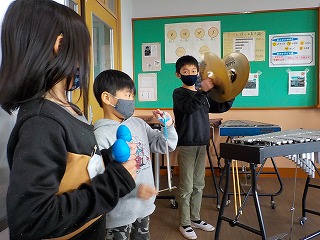 音楽の学習で,自分の好きな音を組み合わせて,魔法の音楽を作る学習をしました。一人ひとりの考えが組み合わさり,班ごとに色々な魔法の音楽ができました。