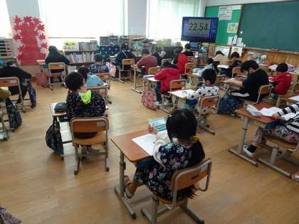 本日,3年生以上がジョイントプログラムを行っている時に,2年生も学力テストの模擬テストを行いました。