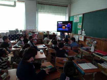 体育科の「とび箱あそび」の学習で,本日はビデオを見てポイントを押さえました。踏切や手のつく位置,空中姿勢などできていない例を見て,自分たちで気付いていました。