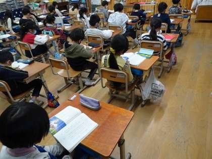 国語科の学習で,これから学習する「スーホの白い馬」の朗読を聞きました。今までに比べて文章が長くなり,子どもたちは聞きながらどんな話か想像して聞いていました。