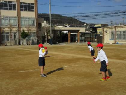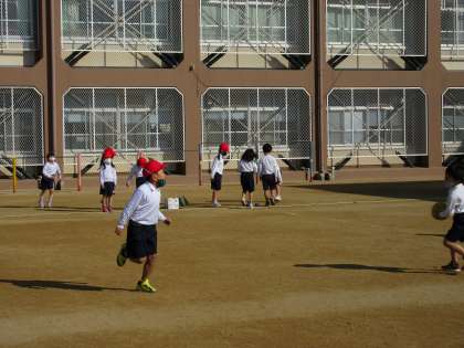 準備・片付けにはライン引きやボール担当など一人一人役割があり,自分たちの力で場を整えています。1年生のみんなにもコート作りができるかな…と心配していましたが,よく理解して,どんどん準備がうまくなっています!