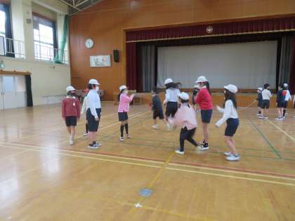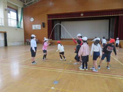 みんなで声を掛け合いながら,どうにか連続で跳べるように協力しています。