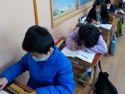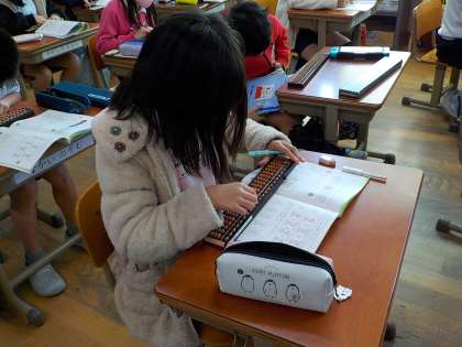 3年生は算数の学習で,そろばんを使っています。