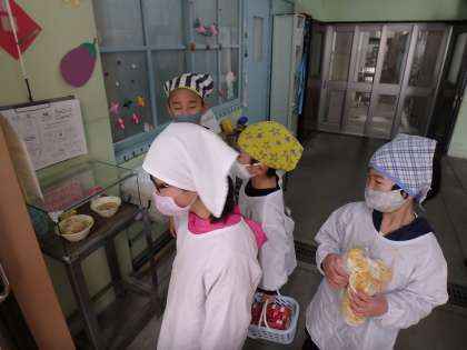 クラス全員が楽しみにしているみかんゼリーもしっかり持って教室へ向かいました!