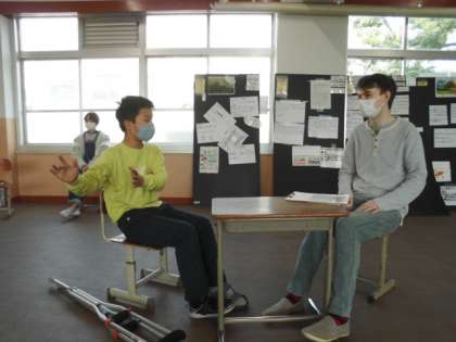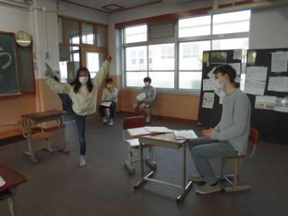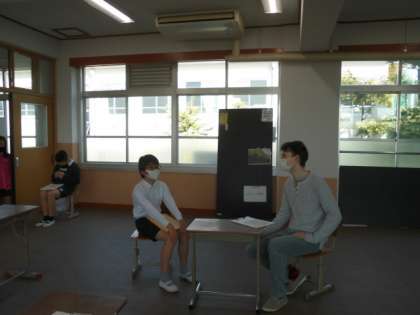 ALTの先生に伝わるようにジェスチャーをしたり実演して見せたりなど工夫して発表していました。そのようになんとかして相手に伝える・届けるということが大切だと気づいてくれたのではないかと思います。ALTからの褒め言葉に生き生きとした表情で答えていました。