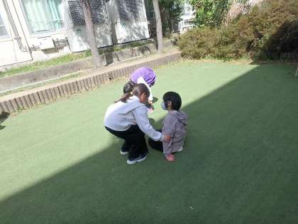 チャイムが鳴って遊びが終わったときに,「お名前は?」と名札を読み上げてお友達の名前を憶えていました。