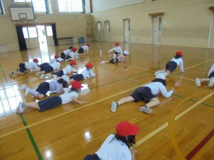 いろいろな動物になりきって楽しく体ほぐしの運動をしました。