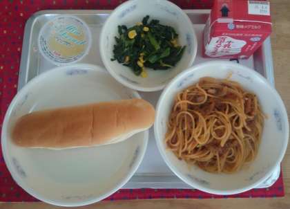 第1弾の今日は,給食初日の4月14日(水)に登場した「スパゲティのミートソース煮」です。