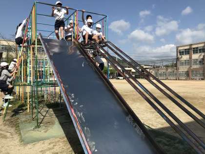 久しぶりの遊具に,怖がりつつも,とても楽しんでいました。