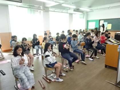 音楽ではリコーダーで少しだけ音を出し,音の出し方を確認していました。