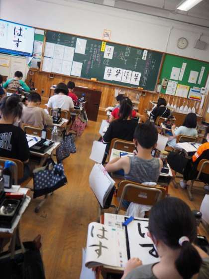 ひらがなの丸みや形,横の結び,縦の結びの筆づかいに気をつけて