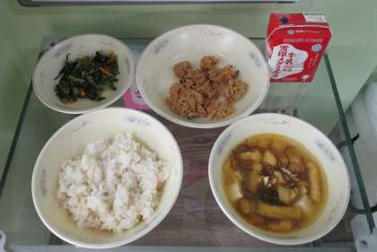 ★『ぜんいんかんしょくできました。「おからツナ丼」と,「だいこんばのごまいため」がすごくおいしかったです。おからツナ丼とごはんの組み合わせがいいなと思いました。』