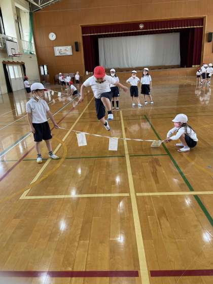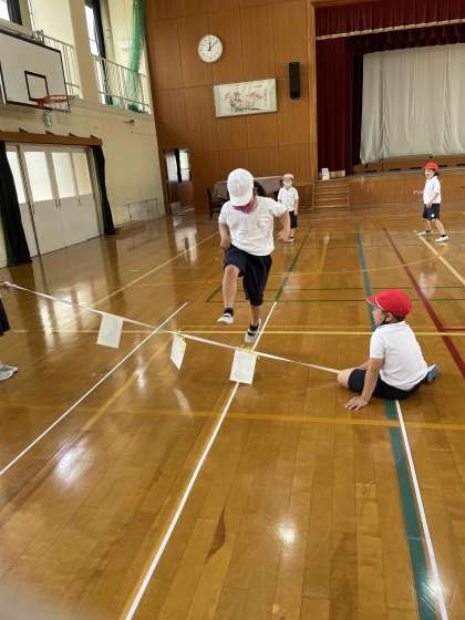 次は5歩跳んで,誰が1番遠くまで跳べるか比べました。