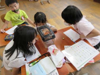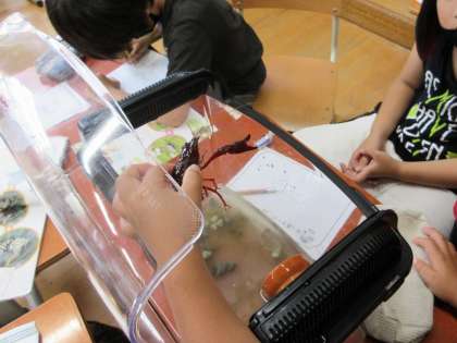 クラスで飼っている生き物たちを観察しました。