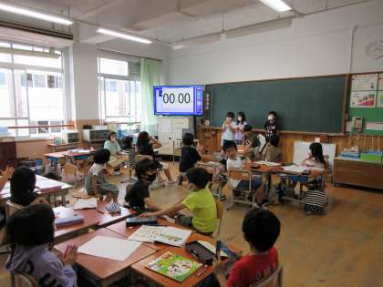 同じグループの友達とタイミングを合わせて,みんなの前で発表しました。