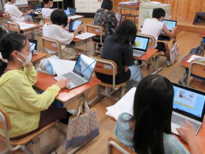 今日の委員会活動の時間に,環境美化委員会では,パソコンを使って掃除にかかわるクイズに答え,動画で地球環境の現状について学び,環境についての関心を高めました。